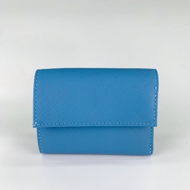 三つ折りのコンパクト財布です。縦横およそ9㎝、手のひらにすっぽり収まるサイズです。カード収納は1箇所のみですっきりデザインとなっています。よく使用する小銭は、大きく開いて取り出しやすい設計です。セカンド財布としてコンビニや旅行時にかさばることなく便利にご利用いただけます。