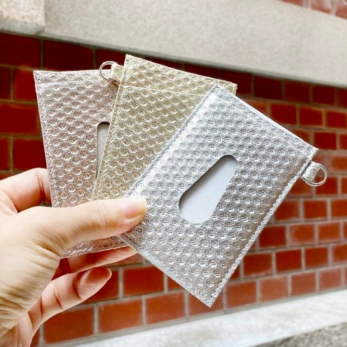 箔の上から型押しを施したスパイク箔の革を使用したパスケースです。