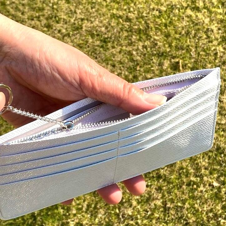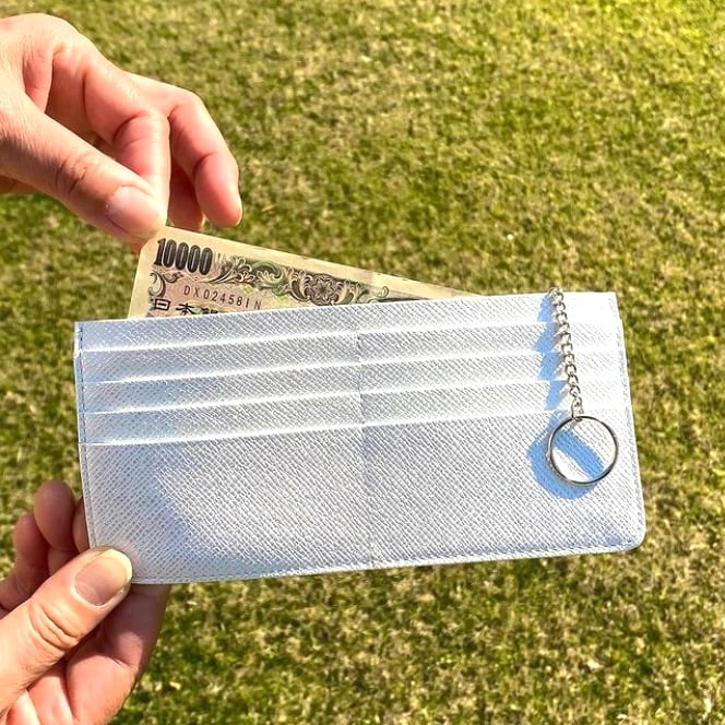 お札やカードはもちろん、ポケット部分には小銭も収納できとてもスリム。