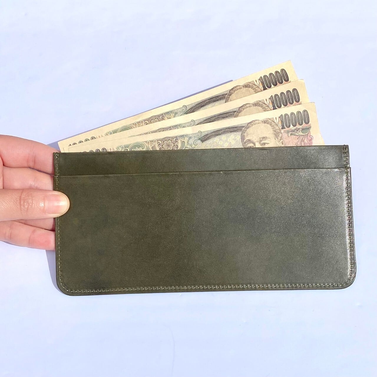 「シンプルでお札だけを持ち歩けるお財布が欲しい」というお客様のお声からお作りした、かさばらない薄型札入れ。