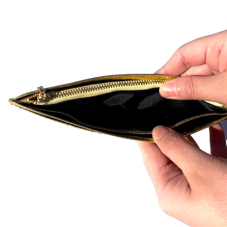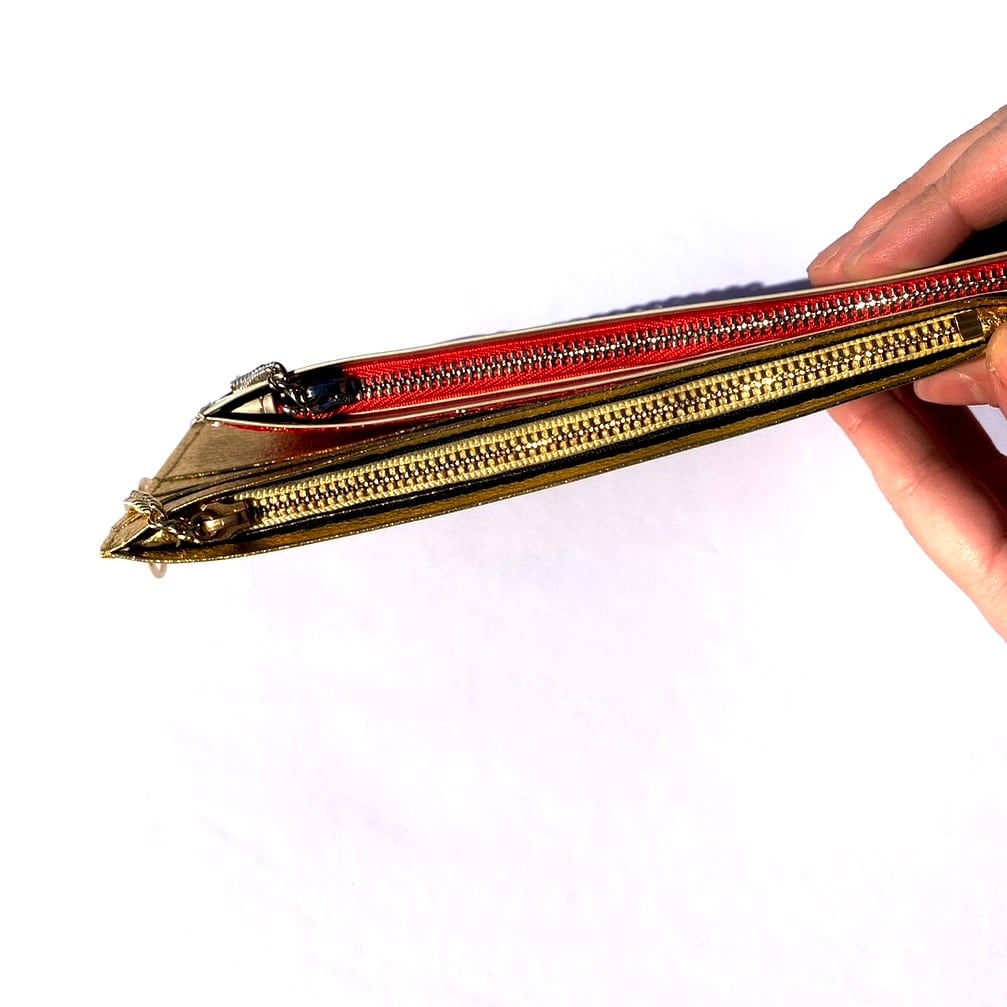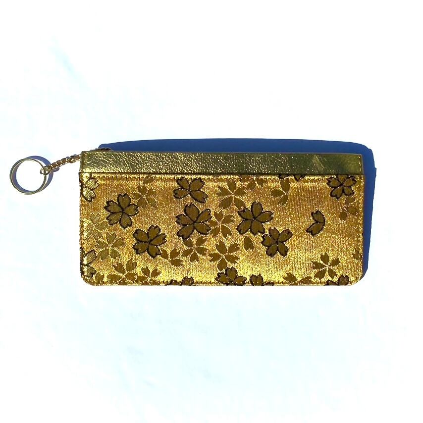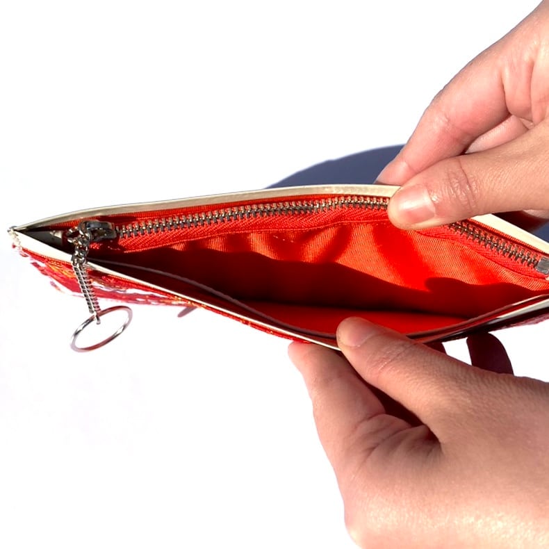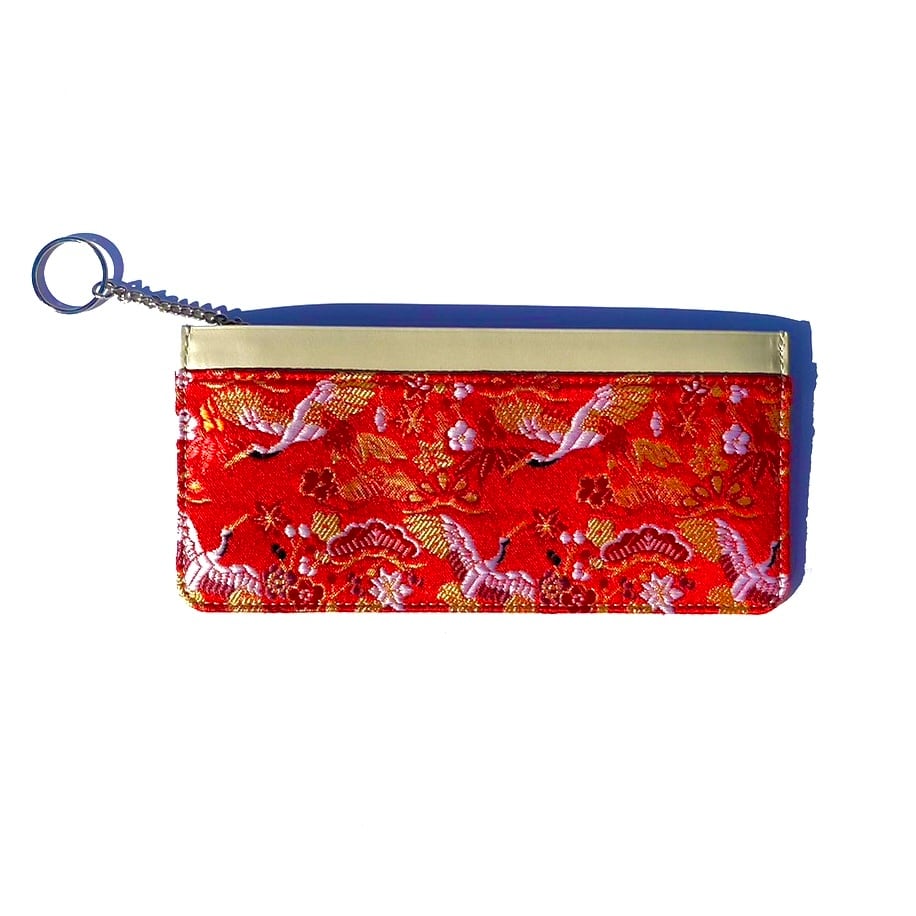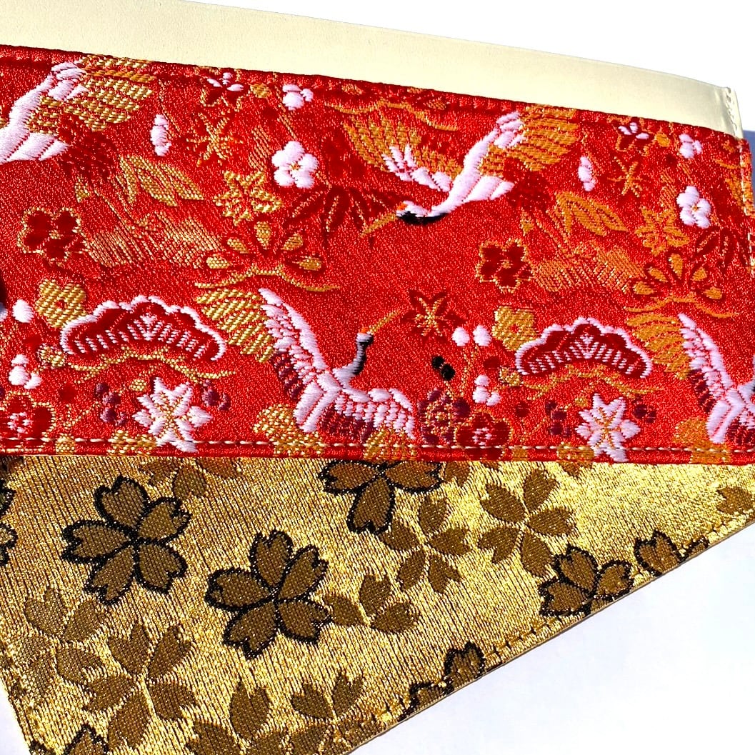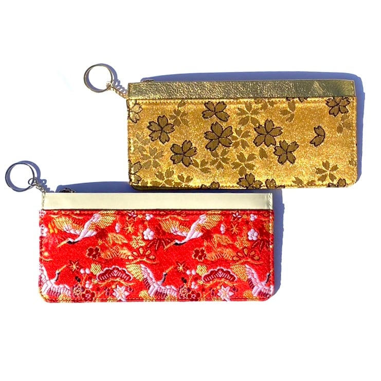着物の帯の間にしまえる帯財布を緞子とレザーの組み合わせでお造りしたスマート財布。