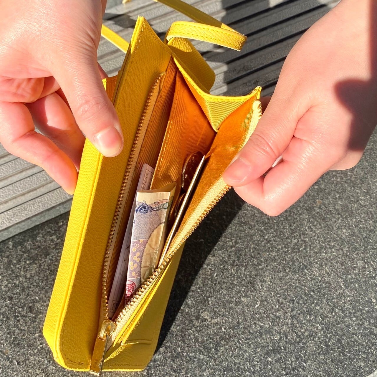 スマホとカード、お金をまとめて持ち歩けるスマホポーチ。
