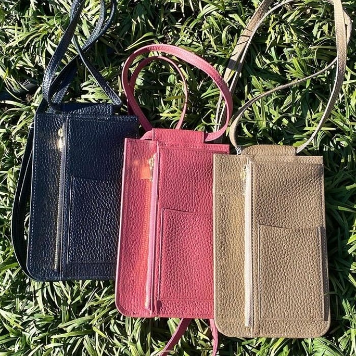 前面のスマホポケットはマチを広く取っているので、大きめのサイズのスマホや、スマホケースに入った状態でも収納可能です。