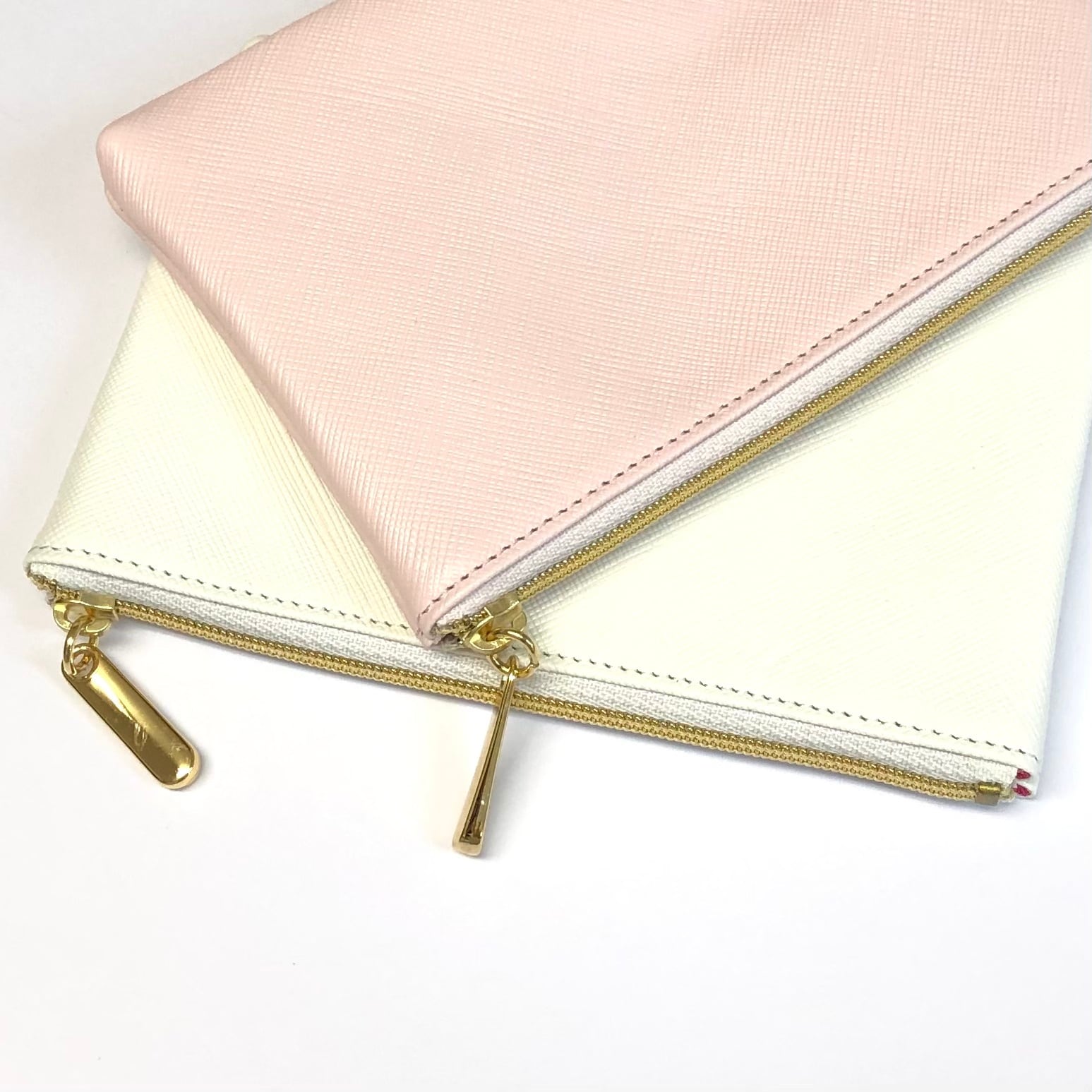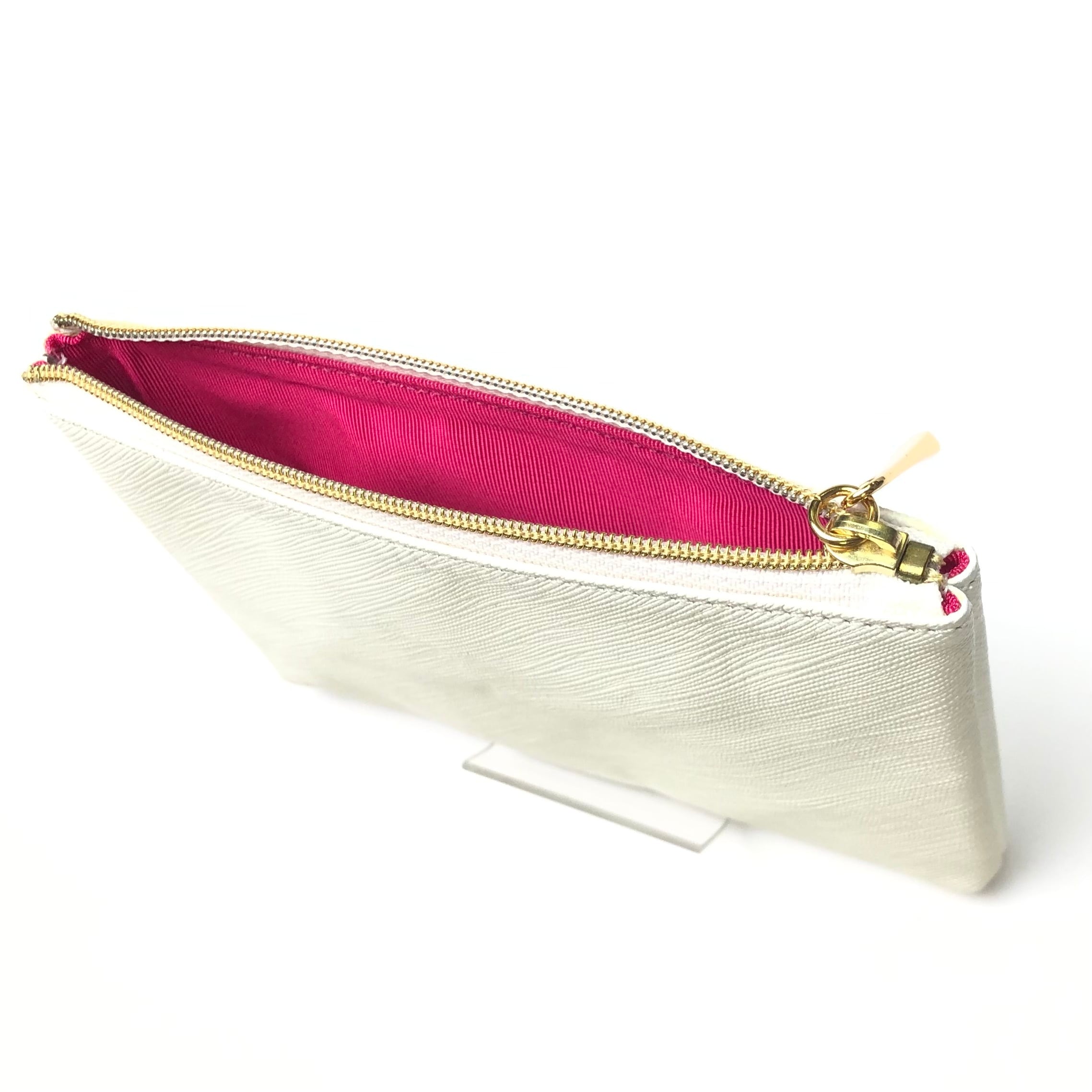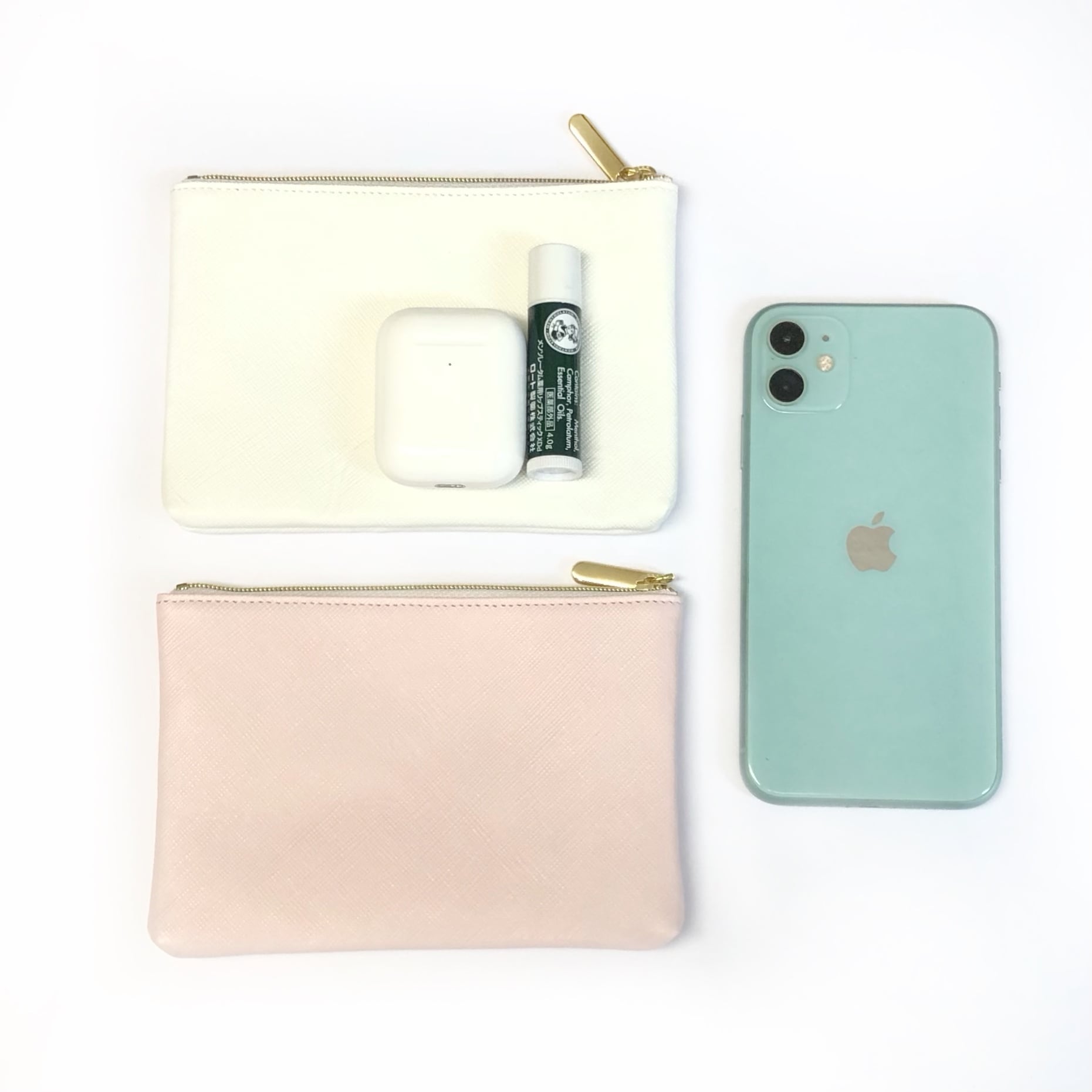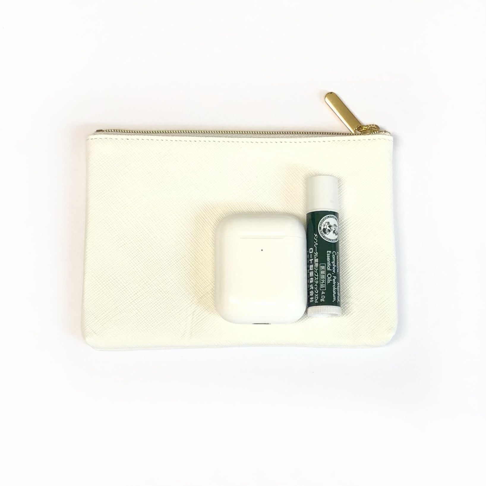 傷や汚れにも強い、型押しレザーを使用したレザーポーチです。